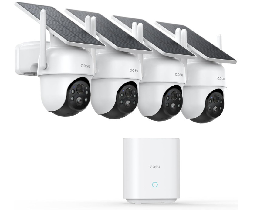 AOSU Security Cameras Outdoor Wireless, 4 Cam-Kit, No Subscription, Solar-Powered, Home Security Cameras System with 360° Pan & Tilt, Auto Tracking, 2K Color Night Vision, Easy Setup, 5G & 2.4G WiFi